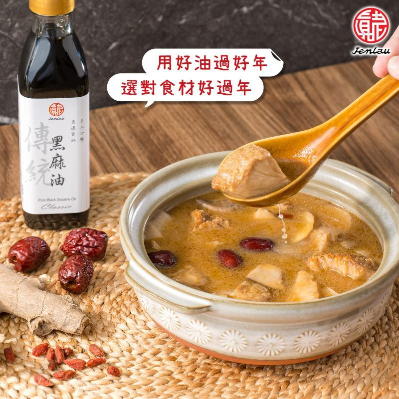 真老冷壓黑麻油,傳統冷壓工法,滋補清潤,配上猴頭菇或杏鮑菇,濃郁豐醇口感厚實。