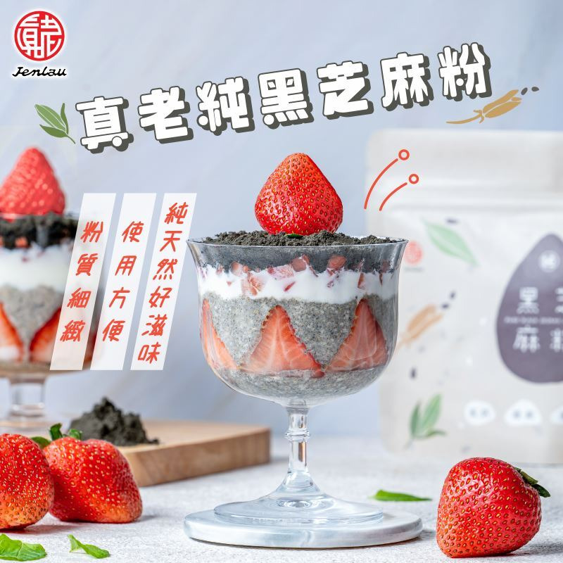 真老黑芝麻粉30g、即時燕麥10g、 牛奶 50ml、原味優格50ml、新鮮草莓、薄荷葉(裝飾)