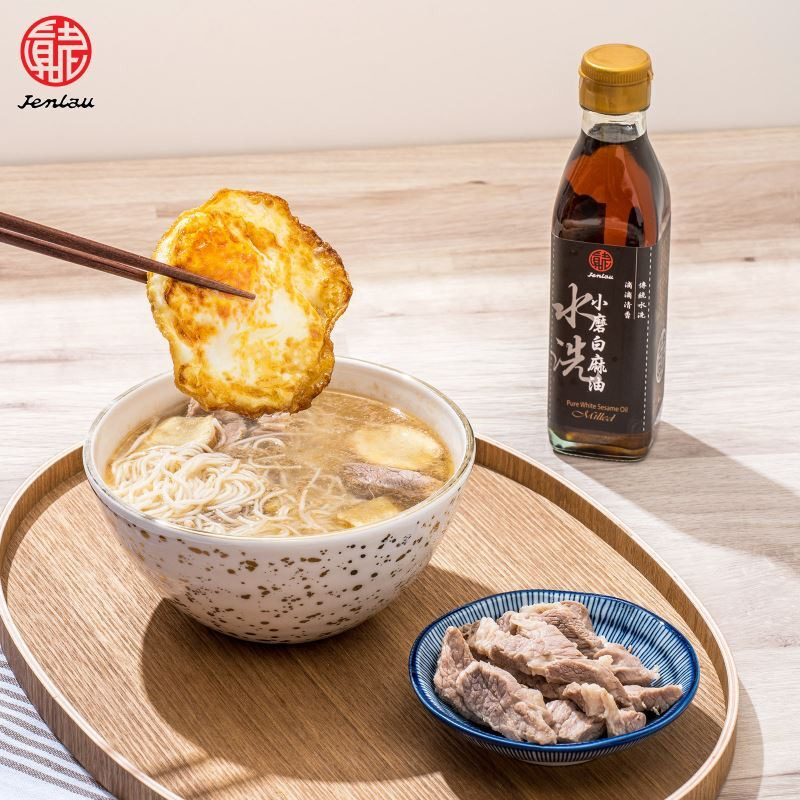 真老小磨白麻油、雞蛋、肉片、薑片、米酒、麵線