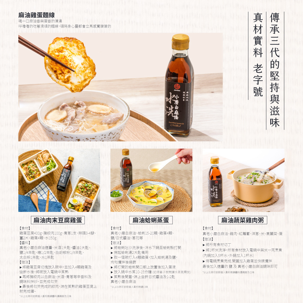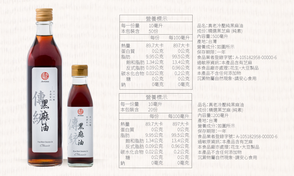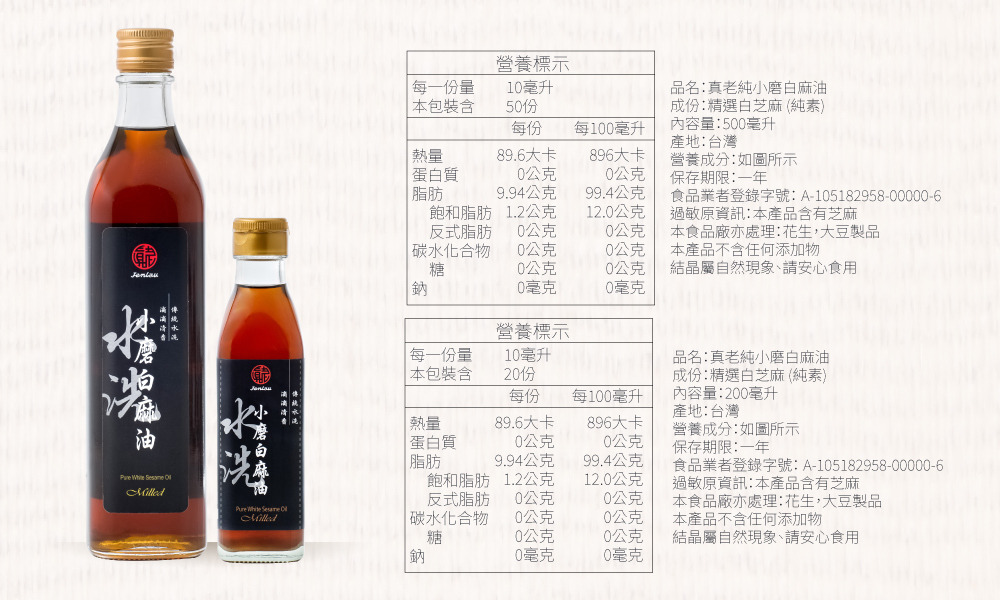 100%純芝麻油,傳統低溫水洗製作