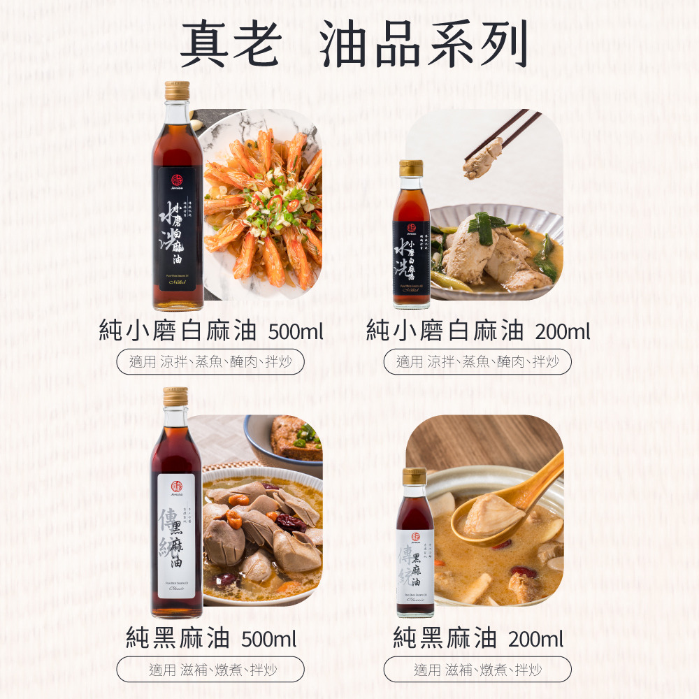 真老 純小磨白麻油+純黑麻油 組
